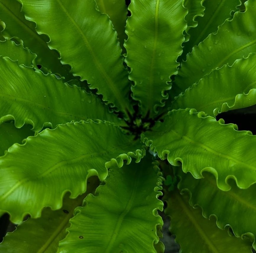 Asplenium nidus ‘Osaka’ is a sought-after variety of the Bird’s Nest Fern, prized for its exceptionally ornamental fronds. Unlike the smooth-edged standard species, ‘Osaka’ produces bright green, semi-stiff fronds that have a distinctive ruffled or deeply crinkled margin. The fronds grow upright in a neat, vase-like rosette, but the ruffling gives the entire plant a dynamic, flowing, and highly textured appearance. This variety offers a striking alternative to the ‘Crispy Wave’ (which is stiffer and more pleated) and is a superb, non-toxic choice for adding architectural form and tropical texture to shaded or indoor areas. It is generally low-maintenance, provided its basic humidity and watering needs are met.