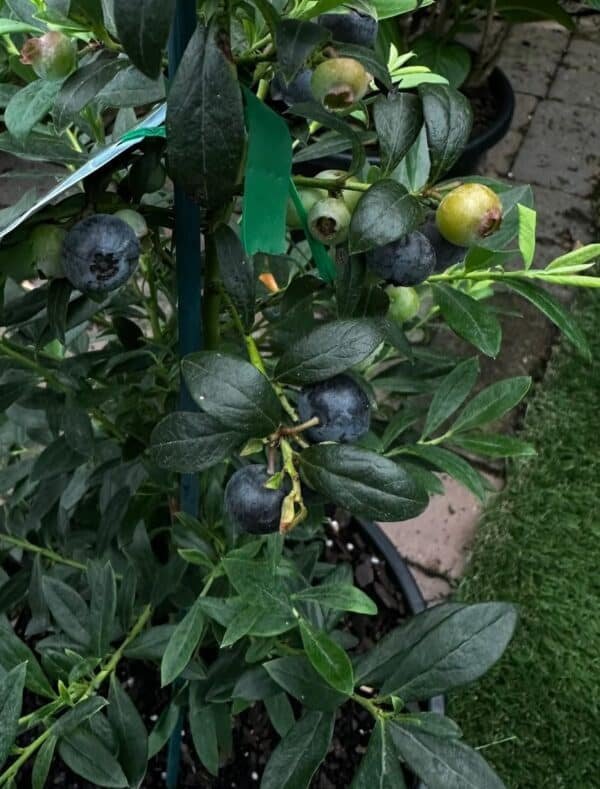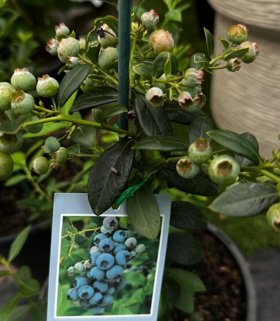 Watering: Blueberries have shallow roots and need consistent moisture, especially while the fruit is developing. They do not like to dry out, but the soil must also be free-draining to avoid root rot.