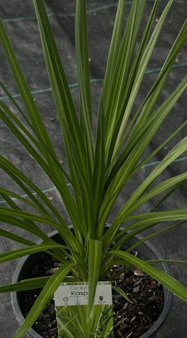 The Cordyline ‘Kaspar’ is a top-notch ornamental plant that is prized for its dramatic, almost black foliage and strong, upright architectural form. This cultivar is an excellent choice for adding contrast and structure to any garden or pot. It forms an elegant, clumping column of sword-like leaves that are a very deep, glossy burgundy or black-purple colour, making it a fantastic dark backdrop for brighter flowering plants. It grows with a neat, narrow habit, making it ideal for tight spaces.