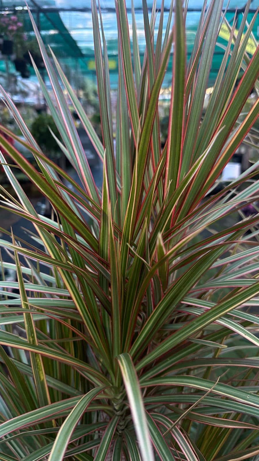 The Dracaena marginata ‘Tricolour’, a type of Dragon Tree, is a stylish and popular evergreen plant, beloved for its striking, architectural form and colourful foliage. Its slender, graceful trunks are topped with a rosette of fine, sword-shaped leaves that are beautifully striped with vibrant green, creamy yellow, and a bold reddish-pink edge. This combination of colours makes it a fantastic statement plant that adds a tropical or contemporary feel to any space.