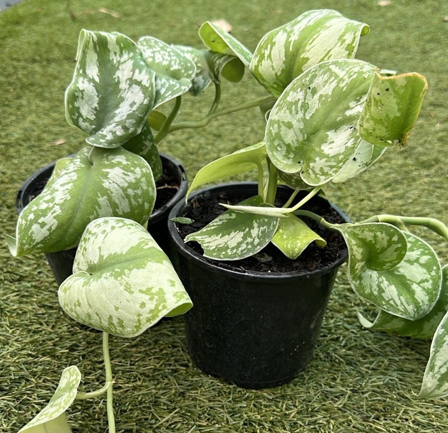 Epipremnum aureum ‘Marble Queen’ is a beautiful, highly variegated cultivar of the popular Pothos or Devil’s Ivy. This plant is celebrated for its lush, heart-shaped leaves that are generously splashed and marbled with shades of white and creamy-yellow against a deep green background. The amount of creamy white variegation is much heavier than in the standard golden Pothos, creating a dazzling, high-contrast effect. Like its parent, ‘Marble Queen’ is a vigorous, low-maintenance, and forgiving plant that can be grown as a hanging basket specimen or trained to climb a support, making it an excellent choice for adding brightness to any indoor setting.