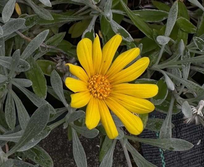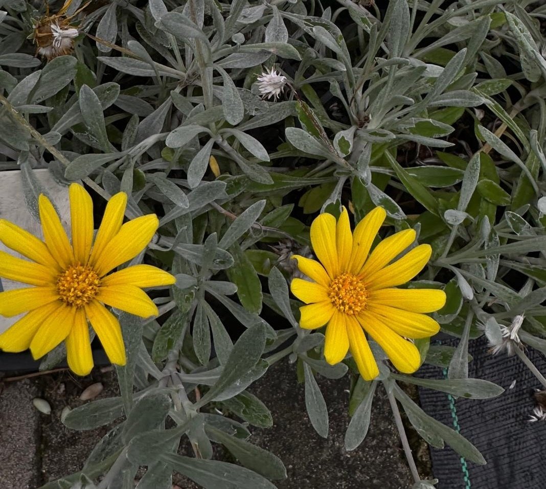 Gazania ‘Gold’ is a cheerful, low-growing perennial, often used as a long-flowering annual or a robust ground cover. It is a very popular choice in Australia for its exceptional hardiness and brilliant floral display. The plant forms a dense, spreading mat of strap-like foliage, which is a soft grey-green or silver colour, making it attractive even when not in bloom. It produces large, single flowers in a vivid, clear golden-yellow colour that open wide on sunny days and typically close in the evening or on cloudy days. Gazanias are tough, water-wise plants that thrive in hot, exposed areas where other plants struggle.