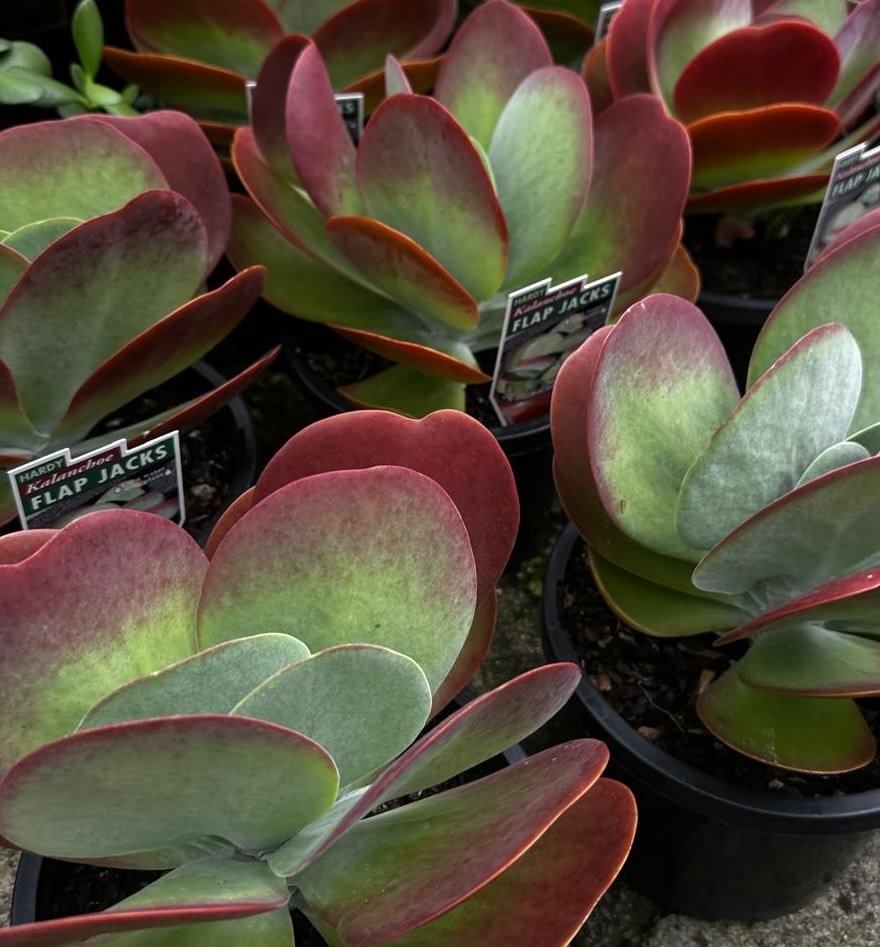 Kalanchoe luciae, frequently called Flapjacks or Paddle Plant, is one of the most visually striking succulents available to Australian gardeners. It is famous for its large, rounded leaves that grow in a basal rosette, resembling a stack of pancakes or flapjacks. The foliage is naturally a soft lime-green or grey-green, covered in a white, powdery coating called farina, which acts as a natural sunscreen.