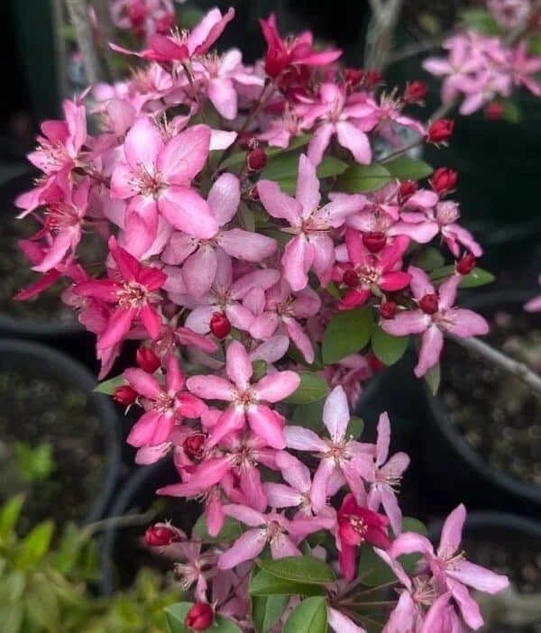 The Malus ‘Tom Matthews’ (often sold under the code ‘Natton’) is a sensational deciduous Crabapple tree, highly valued for its striking, multi-seasonal display and its adaptability. This tree provides a spectacular show in spring when it is absolutely covered in a mass of deep rosy-pink to red flowers, a real standout in the garden. Following the flowering period, it develops attractive green foliage.