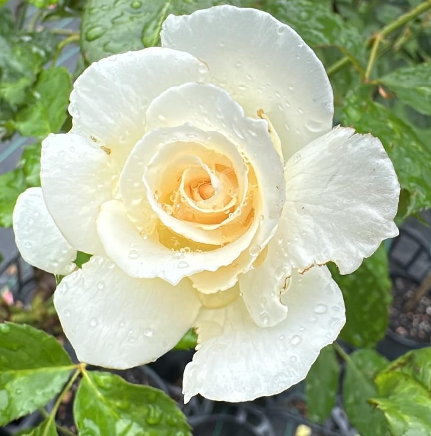 Rosa ‘Margaret Merril’ is a celebrated Floribunda rose, introduced in 1978, which has achieved international recognition for its exceptional qualities, earning the prestigious RHS Award of Garden Merit. It produces medium-sized, semi-double to double flowers that have a lovely, classic Hybrid Tea form when young, opening to a beautiful, soft, pearly-white or ivory colour often kissed with a delicate pink blush, especially on the petal edges. The plant is admired for its profuse and continuous flowering habit, with clusters of blooms appearing throughout the season. Its greatest attribute is its intense, unforgettable fragrance—a powerful blend of rose, citrus, and spice—making it one of the most highly scented white roses available. It grows as a medium-sized, upright shrub with good disease resistance.