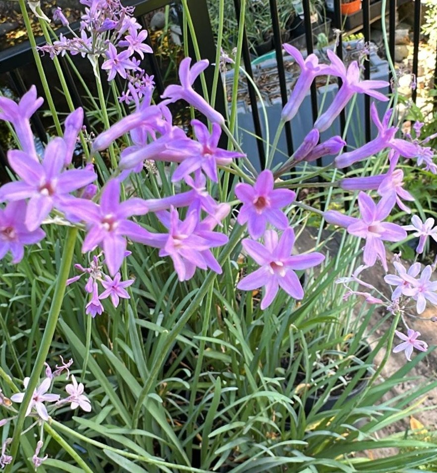 Tulbaghia, commonly known as “society garlic,” is a genus of flowering plants in the Amaryllidaceae family. It’s native to South Africa and includes a variety of species. The name “society garlic” comes from its mild garlic flavor and scent, which is less pungent than that of true garlic (Allium species).